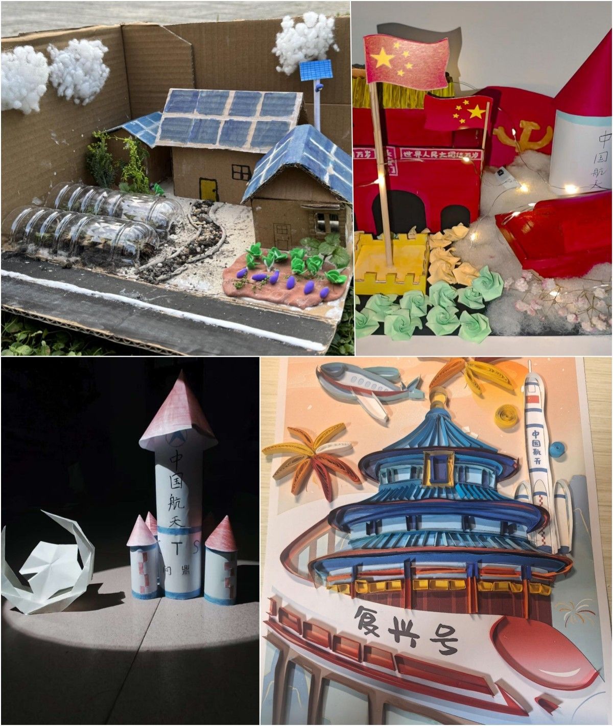 理论认知转化为具象化的艺术创作,这些作品不仅是手工艺术的创意表达,更体现了青年学子对中国式现代化理论的独特理解。此次实践教学活动的开展,是“以美育人、以美启智、以美铸魂”的有益探索,不仅让思政教育从“小课堂”走向“活场景”,更让学生在实践中深化了理论认知,实现了“知识传授”到“价值塑造”的升华。