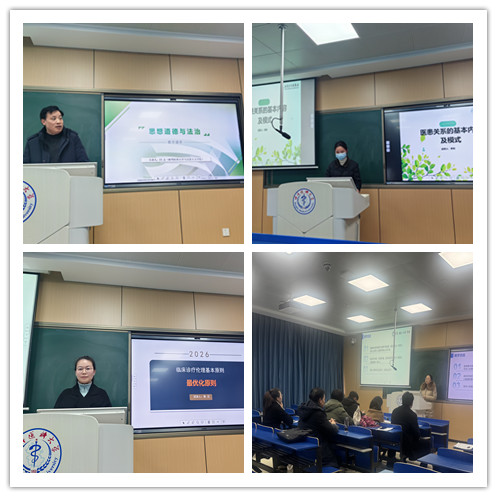 为提升思政课教师的专业素养与教学实践能力,夯实课堂教学基本功,1月6日下午,马克思主义学院“德法”教研室开展《思想道德与法治》《医学伦理学》课程学期末集体备课总结暨新任专兼职教师试讲活动,用“以备筑基、以讲促教”的方式,巩固思政课教师的教学水平,助力新任教师快速站稳讲台、提升教学能力。