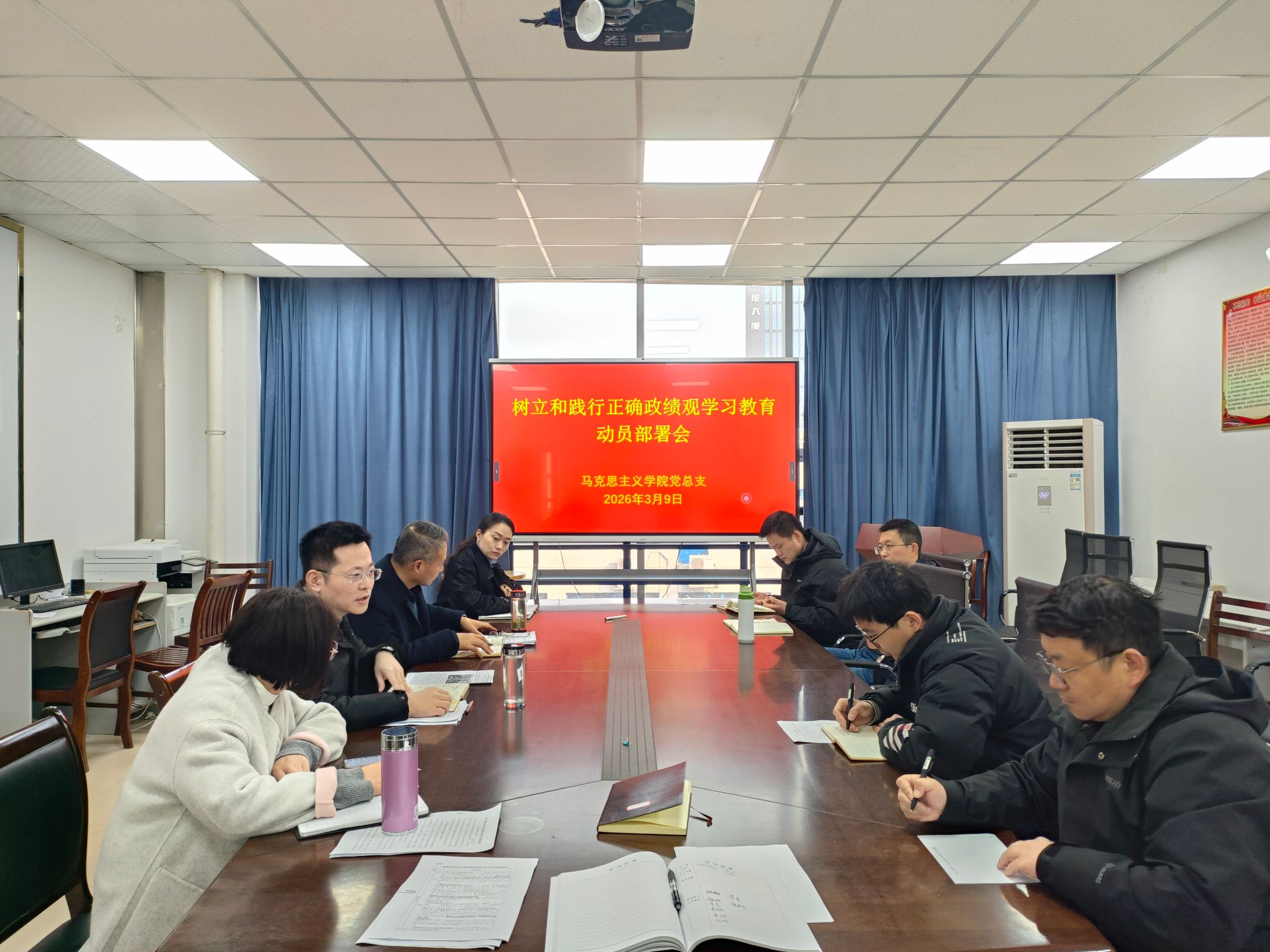 3月9日上午,马克思主义学院召开树立和践行正确政绩观学习教育动员部署会。学院党总支书记张翮主持会议并作动员讲话。副院长黄春,学院党总支委员,各党支部书记参加会议。